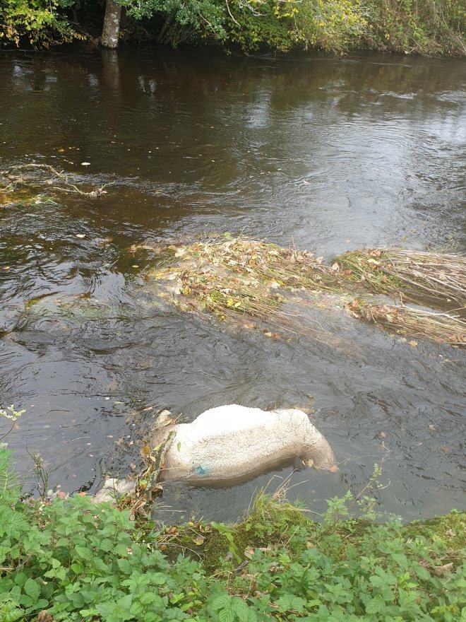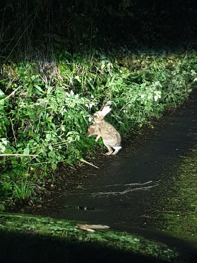 sheep is stuck on the waterside just below the kitchen. Poor thing. Also on way back from work last night caught a hare in my headlights. How rare!