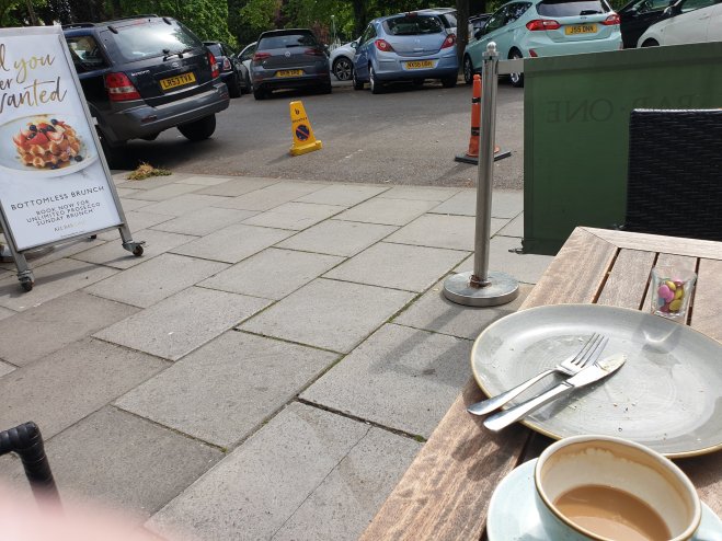 Alone- breakfasting on sourdough and avocadp, fruit and greek yoghurt, freshly squeezed OJ and superb Americano. Sunny day, overlooking grand, leafy,grand square in a beautiful English Spa town. Jackdaws cackling in trees. Charming, attentive waiter. Soon will drag myself to my feet, holding table for support and then limp across the road to car. Arthrtic hip wingeing and creaking the while. This time 2 weeks it will be done total hip replacement right side. But for now, this moment, split second,, not sure I have ever been happier.