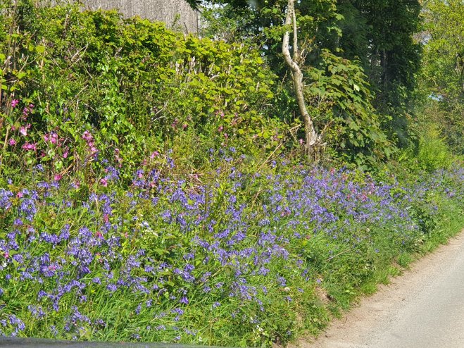 Went to Brexit party rally at dreaded Trago Mills last night.Briliant summer evening, hedgerows blazing with red campion, bluebells, the odd primrose persevering and oceans of wild garlic.Haytor standing out in relief high above usmagnificent against the sunset.Black and white signs for “Brexit Party ushering us in and a security man in black and sort of flak jacket. It had just begun as I drove into car park. Listened to speakers taking to stage with window wound down as searched for parking. Dry sunny and windless but cold. Bitter cold. Woolly hat and scarf job.Nigel and Ann W awesome. Strutting their stuff. Indignant, outraged and determined. Many interesting candidates. Asian nurse, Elderly Admiral type who started at Brittania College, Totnes Yoga teacher with native-American type dangly earrings. “Another very brave Lady putting her head above parapet. ” said Richard er..?, the slick businessman, MC guy. One candidate/member had given her husband one of her kidneys he told us.Film crews wandering about with furry booms. Many young women with blue or turquoise dipped ended hair a la Totnes, piles of white and turquoise polysyrene campaign boards for us to wave and bang on. The Brexit party bus. A pair of scruffy mongrels on leads, small mangy, poodle type standing on hind legs and batting at each another paws around each others neck performing a long, comical dance- owners with their eyes fixed on the stage, oblivious.Lots of shouting, booming and placard waving. Union Flags affixed to long poles with Devon County flags on top fluttering in the evening sun.And all the while the plaintive calls of the Trago Mills peacocks could be heard, often emitted as applause for a speaker burst from the crowd, as if to jolly us all along…..