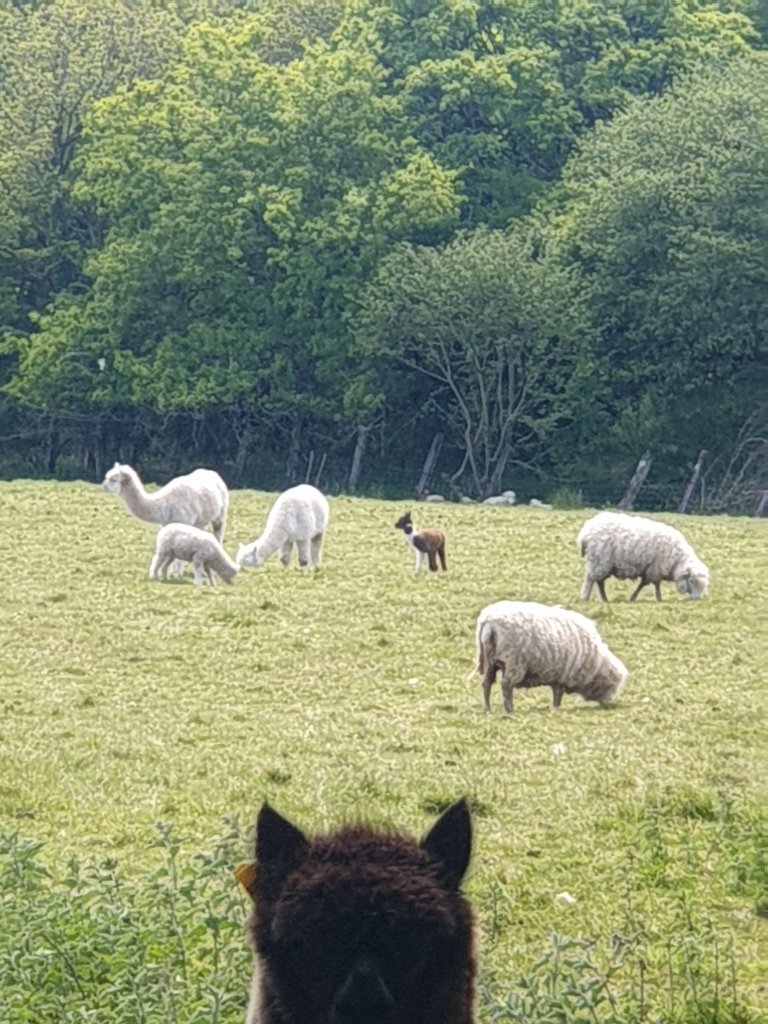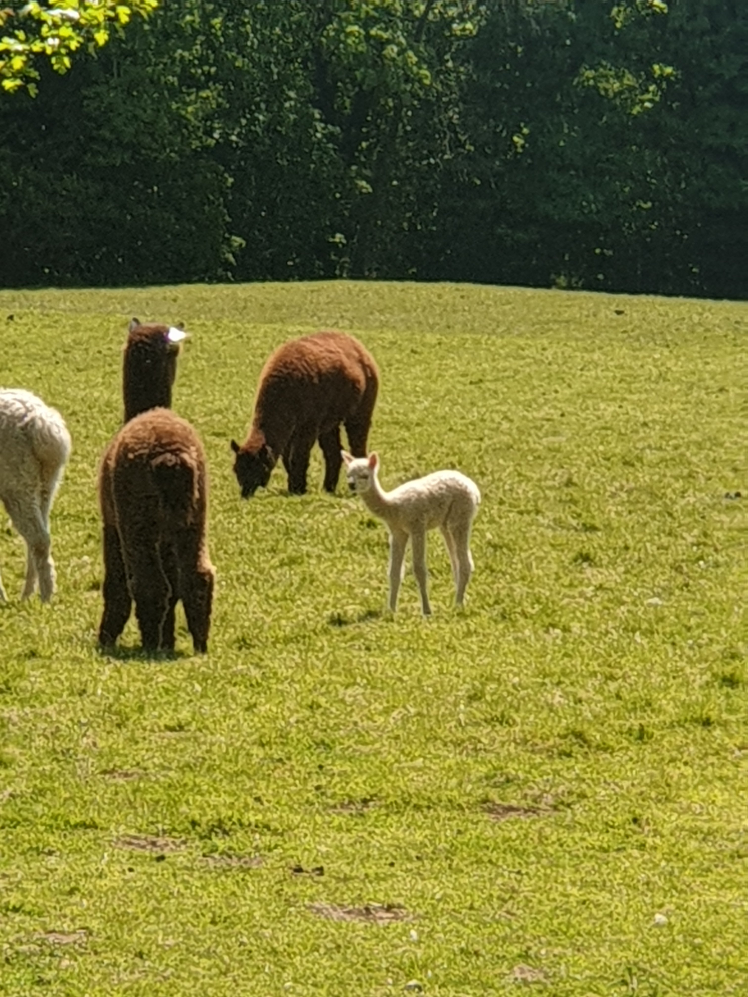 Spotted an Openreach chap in our lane today. I stopped my walk, approached asked, as does everyone in our area when they the spy a BT van, “Please Sir when we can have superfast fibre into our houses and give up our expensive subscriptions to paltry, Satellite internet?” Just as we were speaking I saw the baby Alpaca over his shoulder.